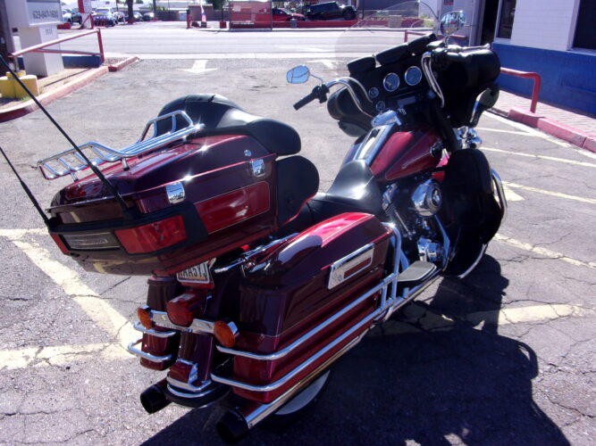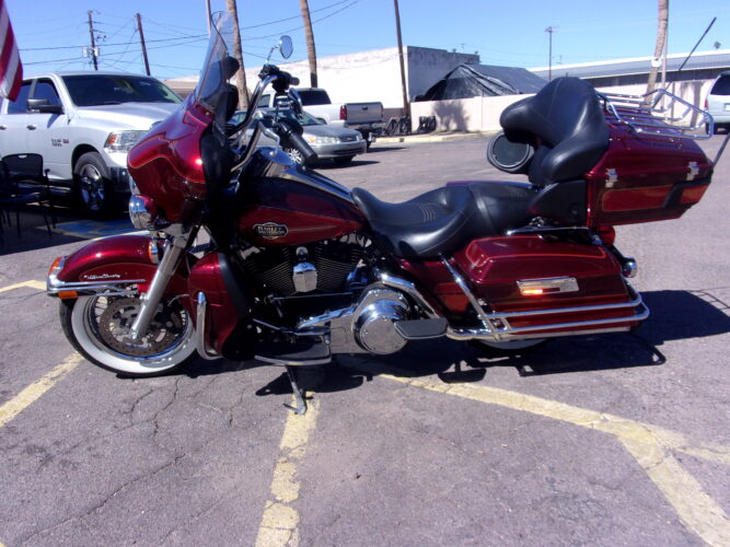 2008 HARLEY DAVIDSON FLHTCU ULTRA GLIDE CLASSIC. GORGEOUS BIKE IN CRIMSON RED SUNGLO/CANDY RED SUNGLO 2 TONE PAINT (THE PICTURES DON’T DO IT JUSTICE!) THIS BIKE IS IN PERFECT CONDITION AND IS SUPER SHARP WITH LACE WHEELS AND NEW HARLEY WIDE WHITEWALL TIRES! 96CU WITH 6SPD TRANS. ADJUSTABLE AIR RIDE, CRUISE CONTROL, INTERCOM SET WITH HEADPHONES AND AM/FM CD PLAYER. RINEHART DUAL EXHAUST FOR THAT PERFECT, NOT OBNOXIOUS RUMBLE! ONLY 21 K MILES. THIS IS A MUST SEE CRUISER! FINANCING AVAILABLE, TRADES WELCOME!