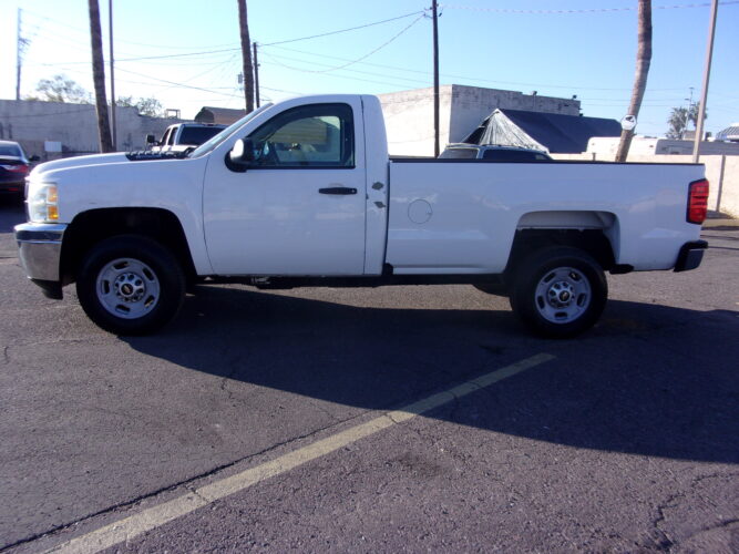 2012 CHEVROLET SILVERADO 2500HD REGULAR CAB LONB BED WORK TRUCK. 1 OWNER NEW TRUCK TRADE. ALL THE RIGHT ONE WITH 6.0L VORTEC V8 POWER, 6 SPEED HEAVY DUTY AUTOMATIC TRANSMISSION, FACTORY TOW PACKAGE, 36 GALLON FUEL TANK, TILT WHEEL, CRUISE CONTROL AND FACTORY TRAILER BRAKE CONTROLER! THAT’S IT! NOTHING TO BREAK! SHE’S BEEN FULLY INSPECTED, SERVICED AND RECONDITIONED WHICH MEANS SHE’S READY TO GO MAKE MONEY RIGHT NOW! COMMERCIAL AND CONVENTIONAL FINANCING AVAILABLE, TRADES WELCOME!